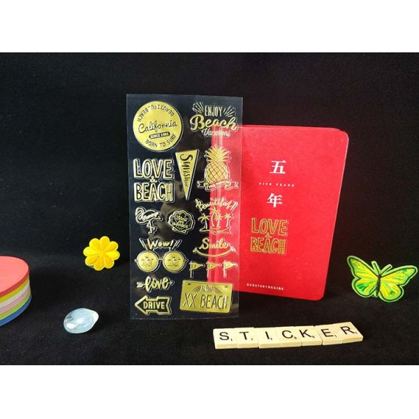 Hot stamping on paper or PVC and other materials, with partial or overall metallic feeling, can be pressed to protrude three-dimensional hot stamping stickers